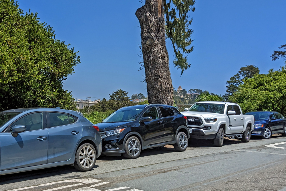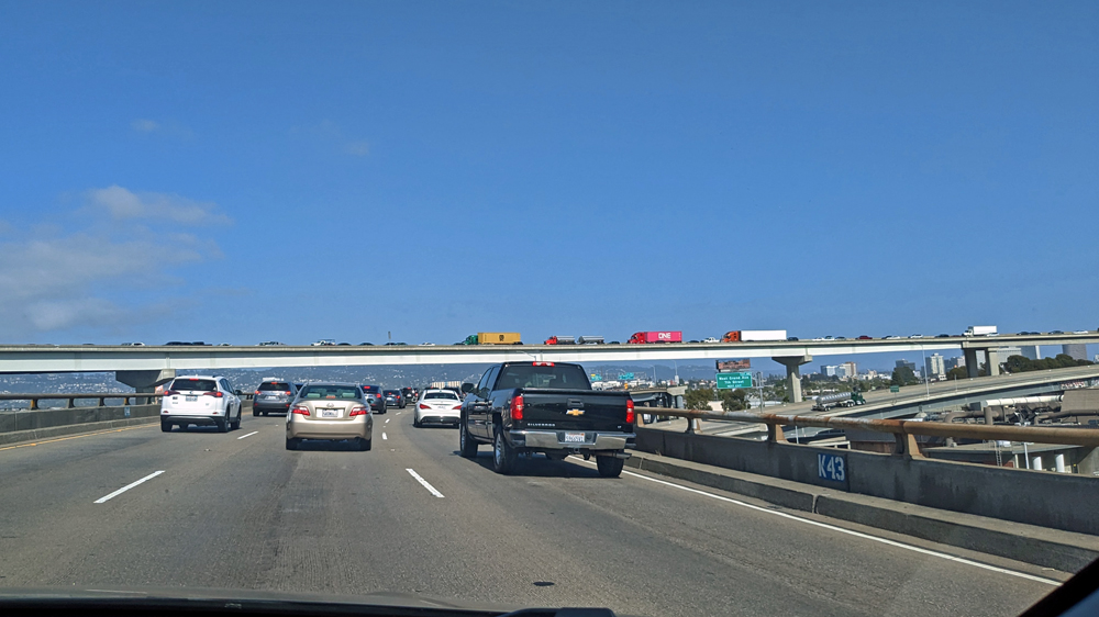 Von Hertz bekommen wir ein Upgrade auf einen Mini-SUV Honda HR-V, da sie gar keine so kleinen Autos haben, und machen uns dann endlich auf dem Weg nach San Francisco. Dabei stellen wir fest, dass unser Übernachtungsplatz nicht nur sehr abgelegen und weit von der Stadt entfernt, sondern für unser Unternehmen überhaupt an einem ungeschickten Ort gelegen ist: Der rund 93 km / 57 mi lange Weg nimmt jeweils rund 1.5-2 h in Anspruch, da die Strassen hoffnungslos überlastet sind (und wir kommen jetzt auch noch dazu…). Und dann müssen wir auch noch jeweils täglich mindestens zwei Mal eine toll bridge (mautpflichtige Brücke) überqueren, was uns insgesamt nochmals 105.36 kostet… Oh well, das nächste Mal (falls es eins gibt), wissen wir besser Bescheid über die Gegend und planen sicher anders.