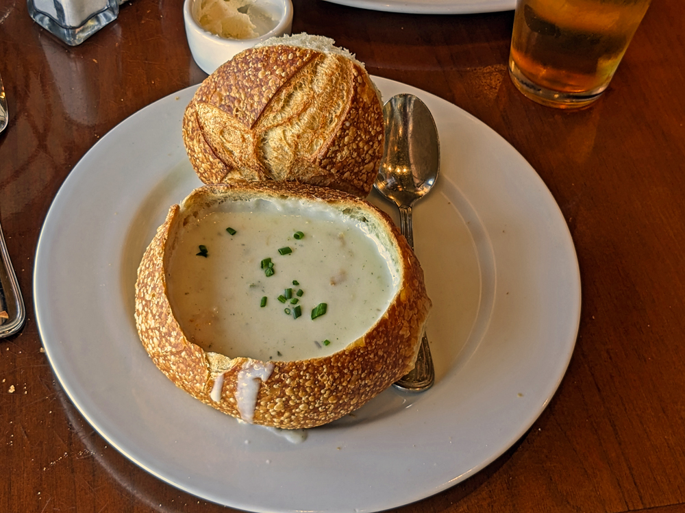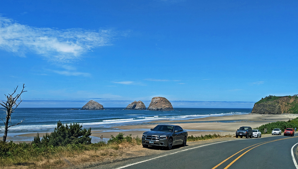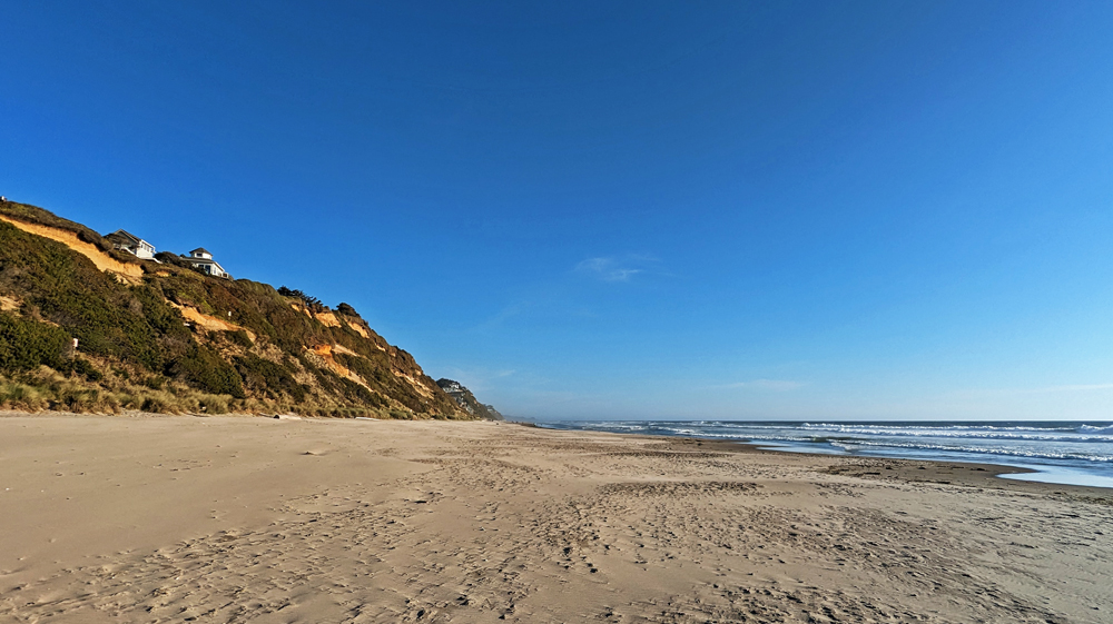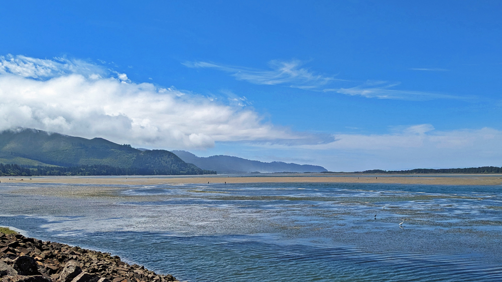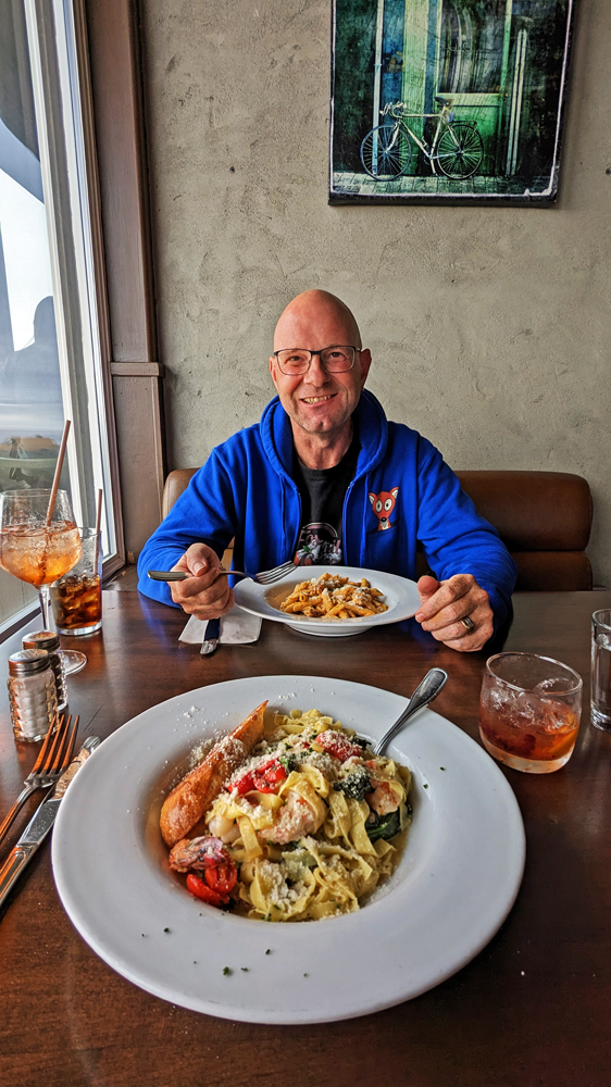 Mittlerweile ist es Nachmittag, doch sind alle State Park Campgrounds entlang der Küste bereits voll. Es ist natürlich auch schon wieder Freitag und damit Wochenende… Als wir durch Lincoln City kommen, entdecken wir sozusagen mitten in der Stadt die Devil’s Lake State Recreation Area, wo es zum Glück noch ein Plätzchen für uns hat. Es gefällt uns so gut – und wir sind so froh, einen Platz gefunden zu haben – dass wir bei der netten Rangerin am Eingang gleich für zwei Nächte buchen. Wir sind an so vielen Fischrestaurants vorbeigefahren, dass wir gleich ins benachbarte Kyllo’s Seafood & Grill Abendessen gehen. Und wir werden nicht enttäuscht: vor allem die Vorspeise aus lokalen Muscheln, gekocht mit Chorizo und Chili und begleitet von frischem Knoblauchbrot (die für eine Person locker als Hauptgang gereicht hätte) ist der absolute Hammer! Es schmeckt uns so gut – und das Angebot ist so verlockend… –, dass wir ausnahmsweise sogar noch Dessert dranhängen und dann pappsatt ins Bett fallen.