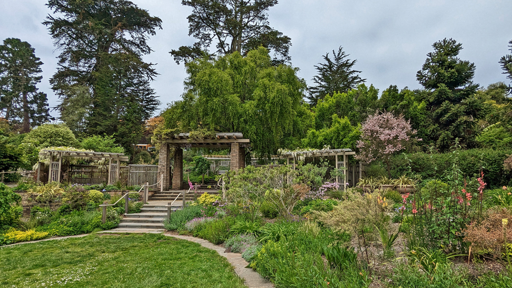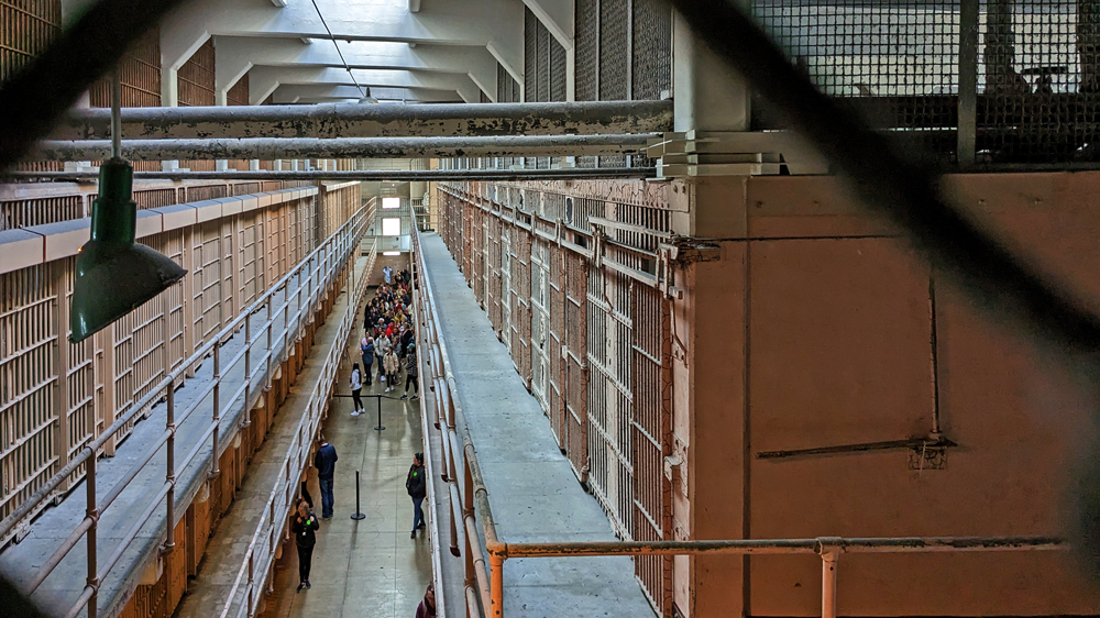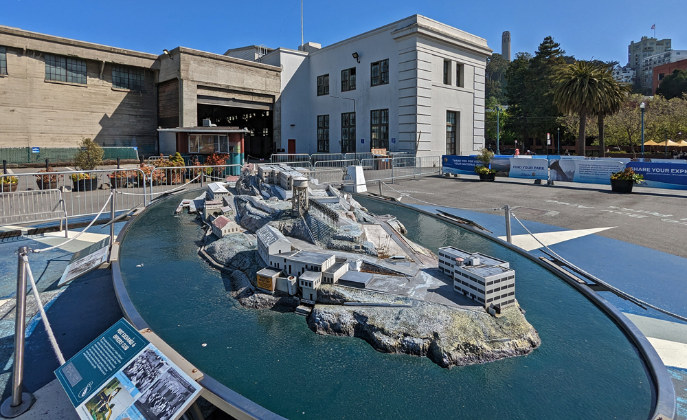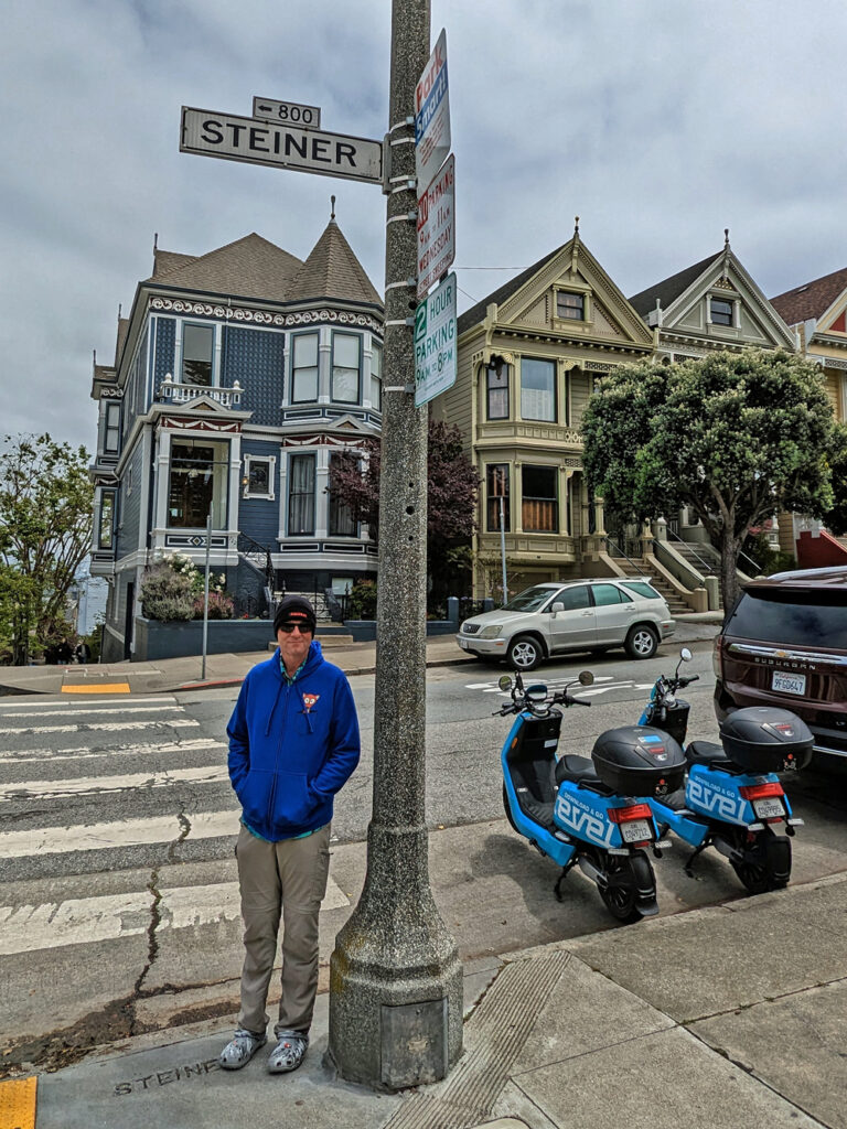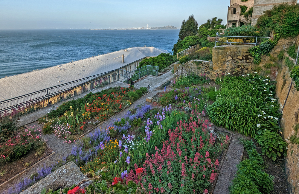 Wir fahren einige Etappen des «49-Mile Scenic Drive» (gute Beschreibung, inkl. Wegpunkten zum Herunterladen und weitere Tipps bei San Francisco 4 you), besuchen den Telegraph Hill mit dem Coit Tower (man müsste auf den Turm, damit man wirklich was sieht, der Hügel ist fast ganz zugewachsen), fahren das berühmte «crookedest road»-Teilstück der Lombard Street (wenn man es selber fährt, wirkt es gar nicht so steil, aber die Blumen sind wunderschön), fotografieren uns an der STEINER Street 😊 vor der Fassade der viktorianischen «Painted Ladies»-Häuser (von denen man heute wegen der davorstehenden Bäume praktisch nichts mehr sieht…), besuchen die drei separaten Gärten im riesigen Golden Gate Park (Japanischer Garten, Conservatory mit exotischen Pflanzen und etwas überwachsener Botanischer Garten), gucken das spannende Cable Car Museum an (eigentlich das aktive Depot, inkl. der riesigen Antriebsräder) und fahren natürlich auch mit der coolen «Strassenseilbahn». Ausserdem können wir endlich auch Alcatraz besichtigen – im Herbst 2015 waren die Touren komplett ausgebucht, jetzt sind wir (zumindest am späteren Nachmittag) fast alleine.