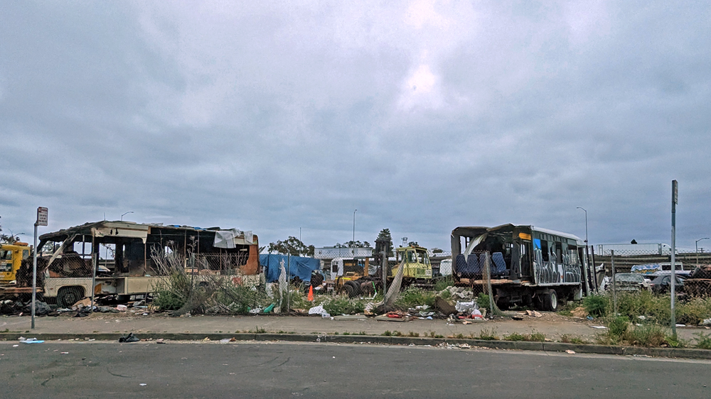 Kurz bevor wir hier ankommen, ist Ozy über zahlreiche Berichte und Kommentare gestolpert, die ein düsteres Bild der Lage auf den P+R Parkplätzen zeichnen: Nicht nur sind «normale» Diebstähle mit eingeschlagenen Scheiben an der Tagesordnung, sondern es sind gerade vor wenigen Tagen auf dem Platz in Antioch mehrere Autos abgebrannt, weil sogar die Treibstofftanks angebohrt werden, um Benzin zu stehlen… Die Polizei kann und will nichts machen, weil es sich bei den BART-Parkplätzen um Privatgrundstücke handelt, und BART kann und will nichts machen, weil sie sich auf die Sicherheit des Personenverkehrs konzentrieren…