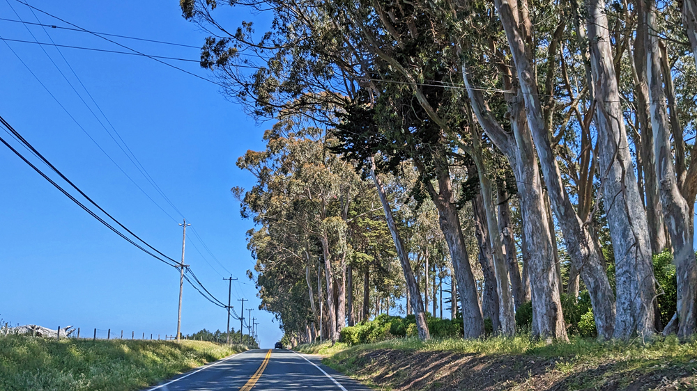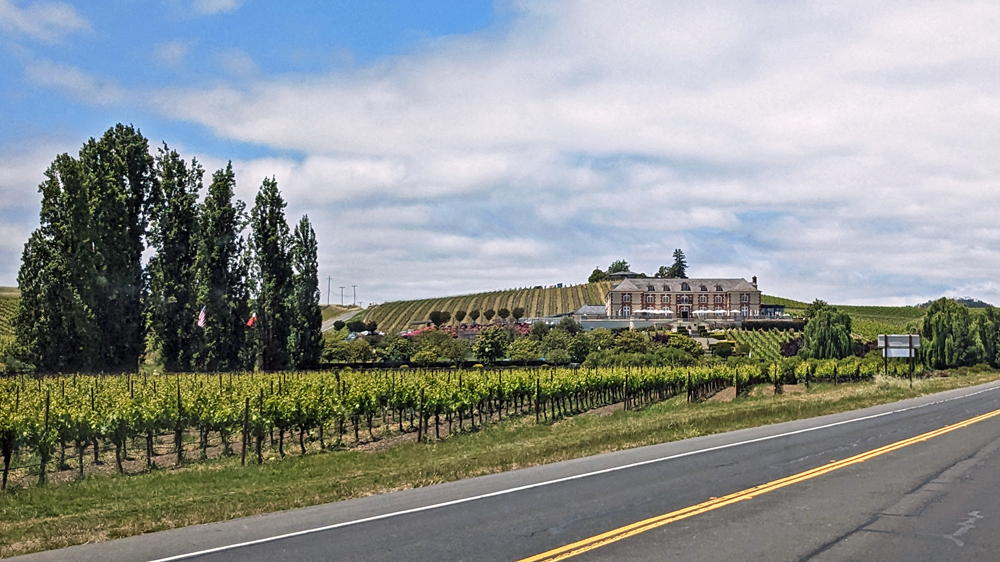 Nun sind wir wieder erholt und motiviert, endlich an die Küste zu fahren! Wir durchqueren dabei die südlichen Ausläufer der für ihren Weinbau berühmten Napa und Sonoma Valleys, die uns mit ihren vielen Hügeln und im Aussehen etwas an die Toscana erinnert. Wir passieren viele Weinberge und – oft in europäischer Architektur erbaute – Weingüter, aber auch Wälder und ausgedehnte Weiden.