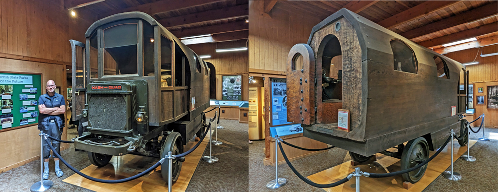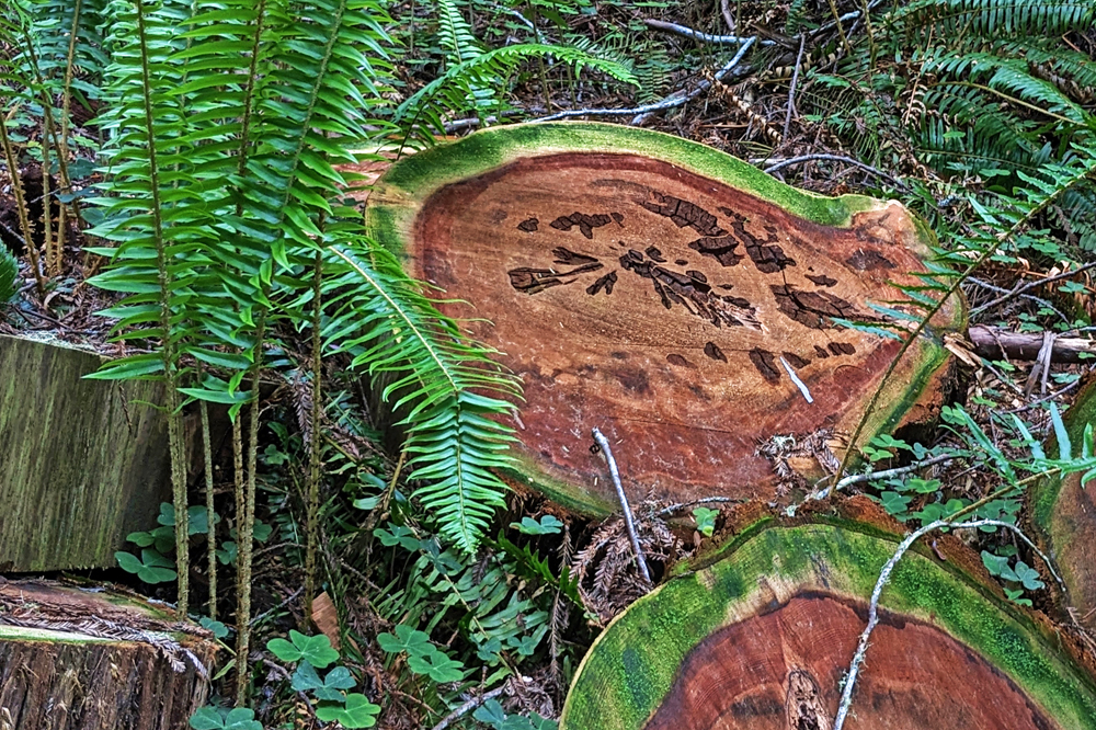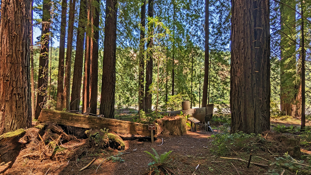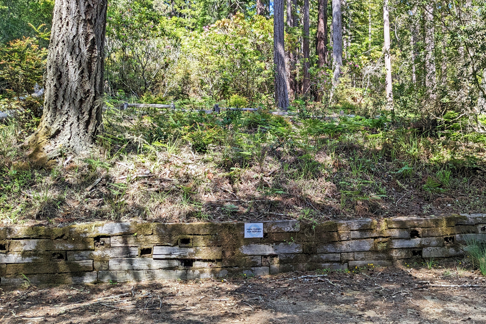 In der Benbow State Recreation Area machen wir übers Wochenende Pause und ich kann wieder eine kleine Wanderung unternehmen. Hier sind die Schäden des grossen Sturms noch viel deutlicher sichtbar. Und auch, wie wenig Ressourcen vorhanden sind, um die Schäden zu beheben: Der Trail ist zwar offiziell vor kurzem wieder geöffnet worden, doch wurden nur gerade die gefährlichsten Stellen entschärft, der Rest gleicht einem Hindernislauf. Über und unter Stämme und durch von entwurzelten Bäumen hinterlassene Krater kletternd erreiche ich die Thrap Mill, eine ehemalige Sägerei, von der noch der Dampfkessel und wenige Ruinen erhalten sind.