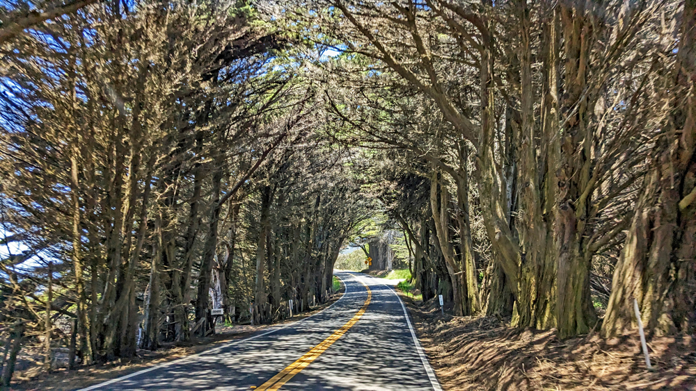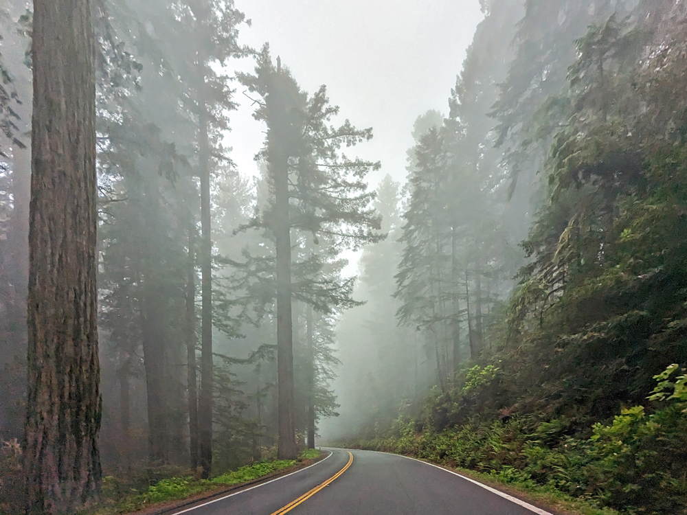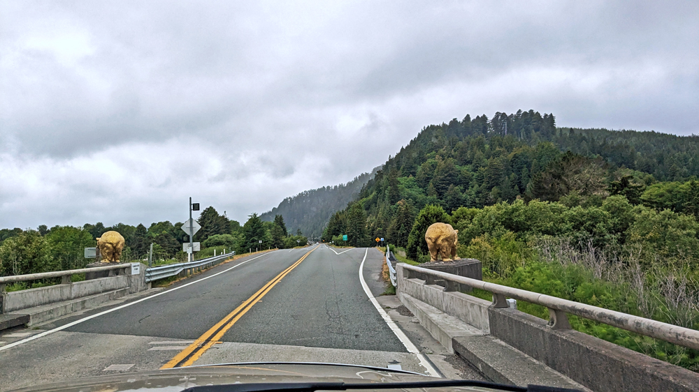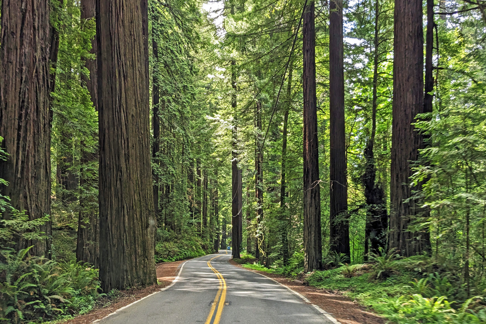 Die Fahrt geht weiter, entlang der Küste, ein bisschen durchs Hinterland und durch viele kleinere Dörfchen, die mit wunderschönen Gärten und traditionellen Holzzäunen sowie einer Unmenge an Kunstgalerien aufwarten. Als sich die CA 1 dann endgültig von der Küste ins Landesinnere verabschiedet, führt sie in immer abenteuerlicheren Kurven durch das mit Coastal Redwoods bestandene Küstengebirge. Bei Legett endet sie dann auch am CA 101, dem sogenannten Redwood Highway.