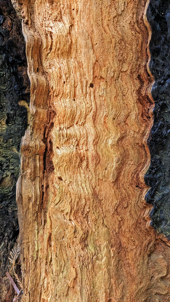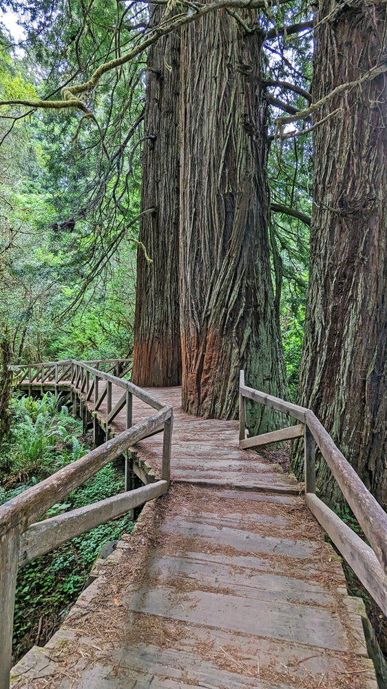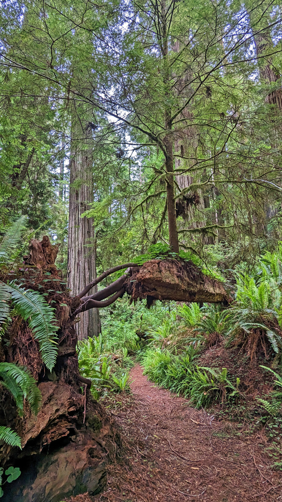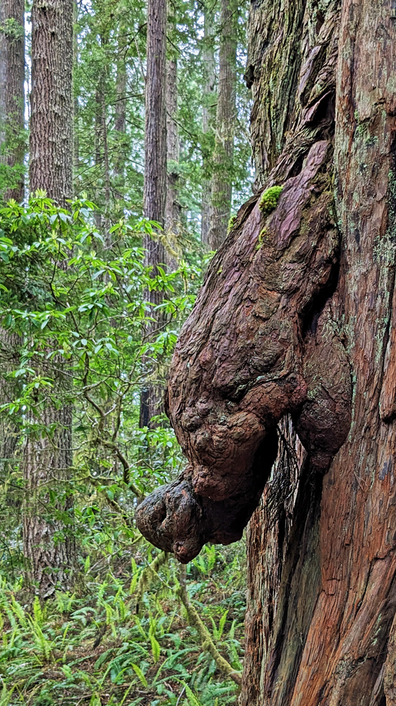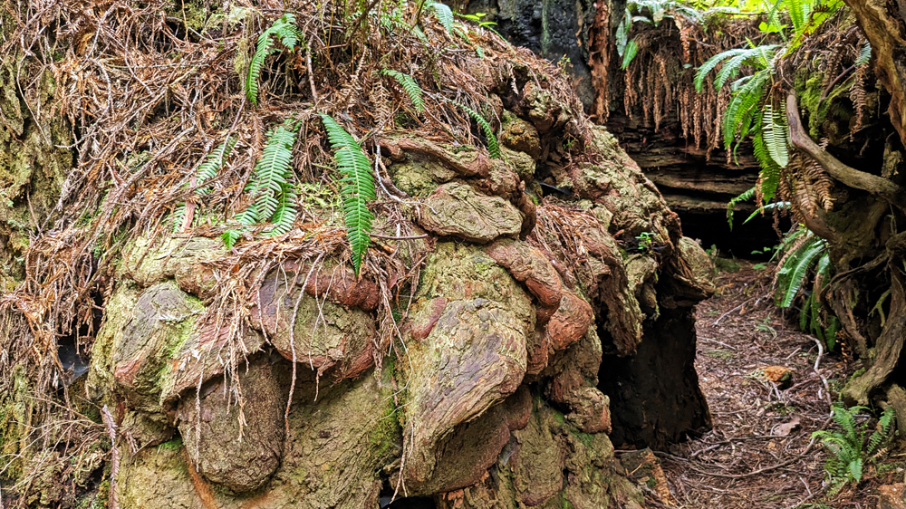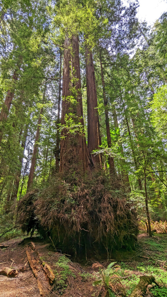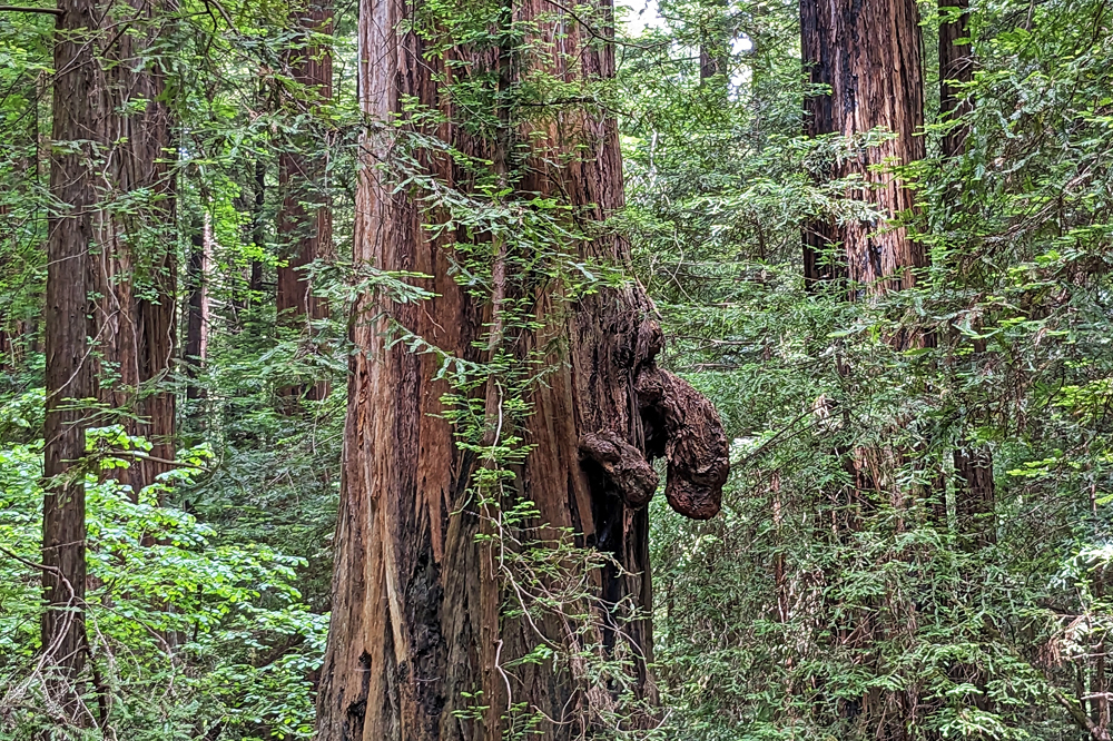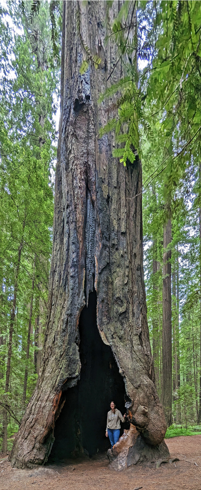 Hatten wir uns in San Francisco «The Rock» und «Escape from Alcatraz» angesehen, so gucken wir jetzt natürlich «Return of the Jedi», der in dieser Gegend gefilmt wurde. Wir sehen zwar keine Ewoks😉, aber die riesigen Bäume sind schon genug! Ihre Höhe und ihr Umfang sind absolut beeindruckend. Interessant sind auch die ganz unterschiedlich geformten burls: Maserknollen, die vor allem im unteren Bereich des Stammes vorkommen und Knospen enthalten. Bei Verlust des Baumes treiben diese aus und es entsteht ein «Familienring», eine dicht stehende Ansammlung neuer Bäume (es erinnert mich etwas an einen Drachen, dem man den Kopf abschlägt und dann wachsen zehn neue nach…). Gefallenen Bäume bieten zudem die Unterlage für Farne oder sogar andere Bäume. Überhaupt sind die Wälder als solches intensiv grün, wunderschön und geheimnisvoll, besonders, wenn es Nebel hat. Wir besuchen einige der sehr lehrreichen Besucherzentren und waldlehrpfad-ähnlichen Trails durch die groves mit Beschreibungen zu den Bäumen und zum gesamten Ökosystem und staunen.