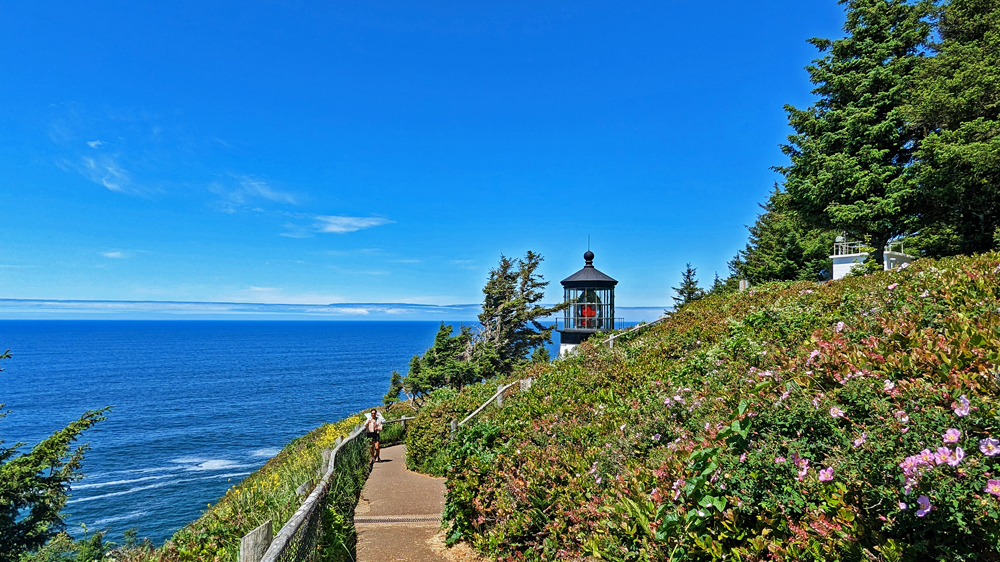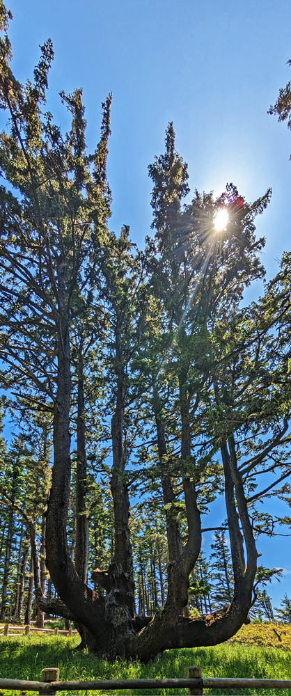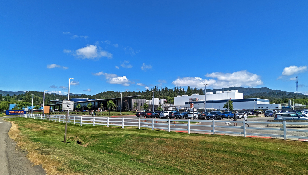 Am nächsten Tag machen wir einen Ausflug zur Küste und zur Tillamook Creamery. Es ist herrliches Wetter, Samstag und dementsprechend viel los. Sowohl an der Küste als auch bei der der Käserei. Die Parkplätze an den Stränden sind alle übervoll (nicht nur Strandvergnügen sondern auch Muscheln ausgraben), doch finden wir beim Cape Meares Scenic Viewpoint noch ein Parkplätzchen, wo wir durchs Teleskop einer freundlichen Rangerin brütende Möwen und Kormorane beobachten, den hübschen gleichnamigen Leuchtturm besuchen und den Octopus Tree, eine 250-300 Jahre alte und sehr speziell gewachsene Sitka Fichte (Picea sitchensis) bewundern können.