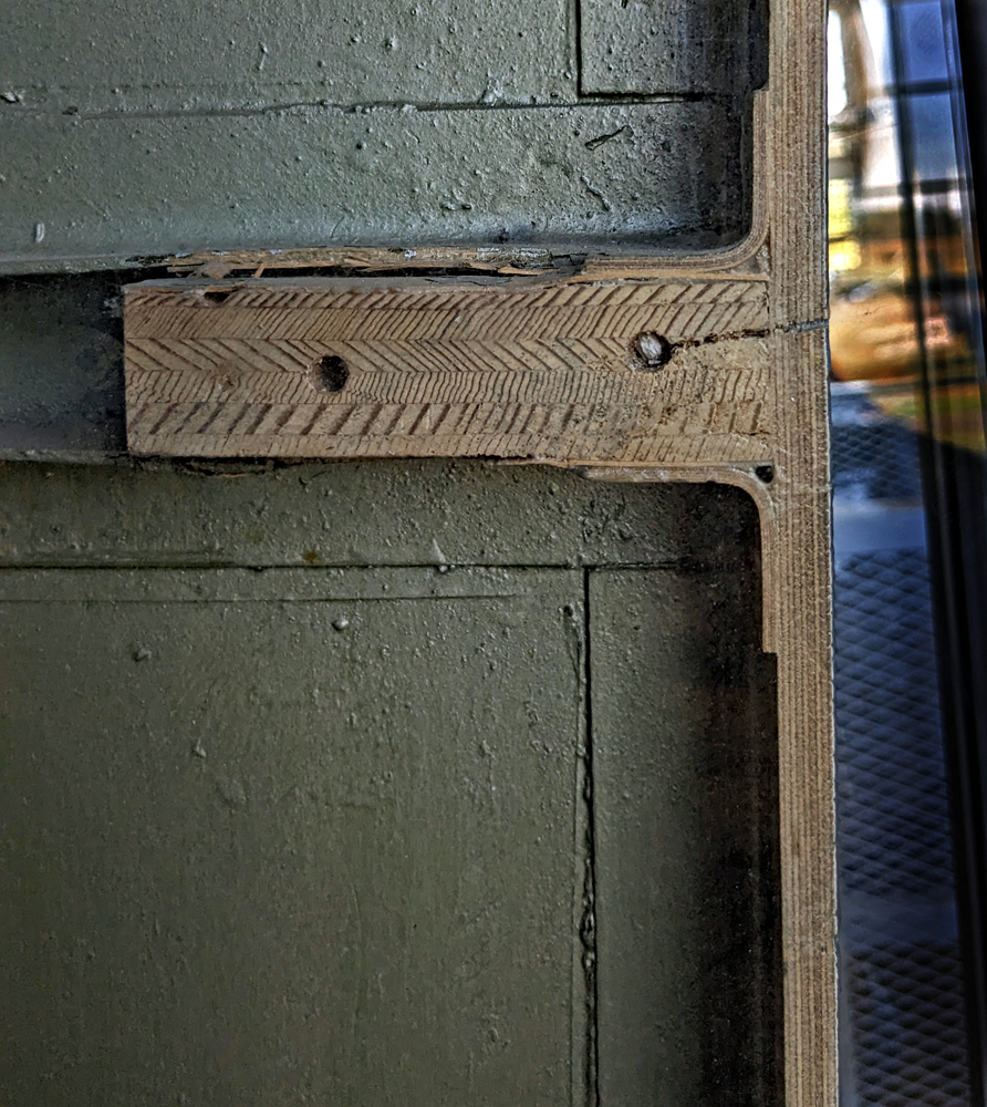 - «Badzimmer-/Kleiderschrank»-Türe abgestützt