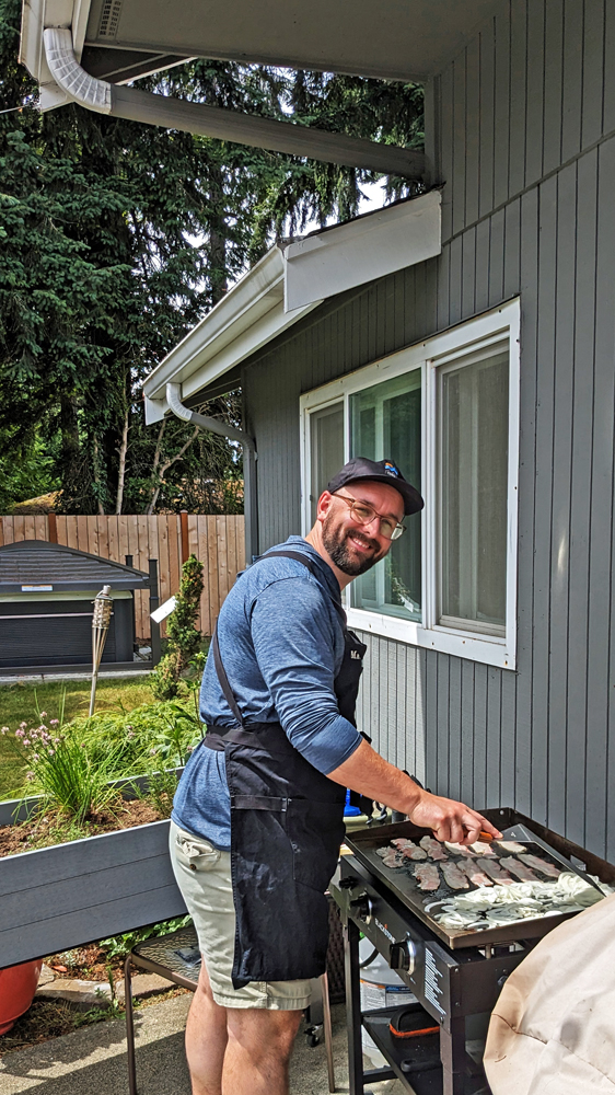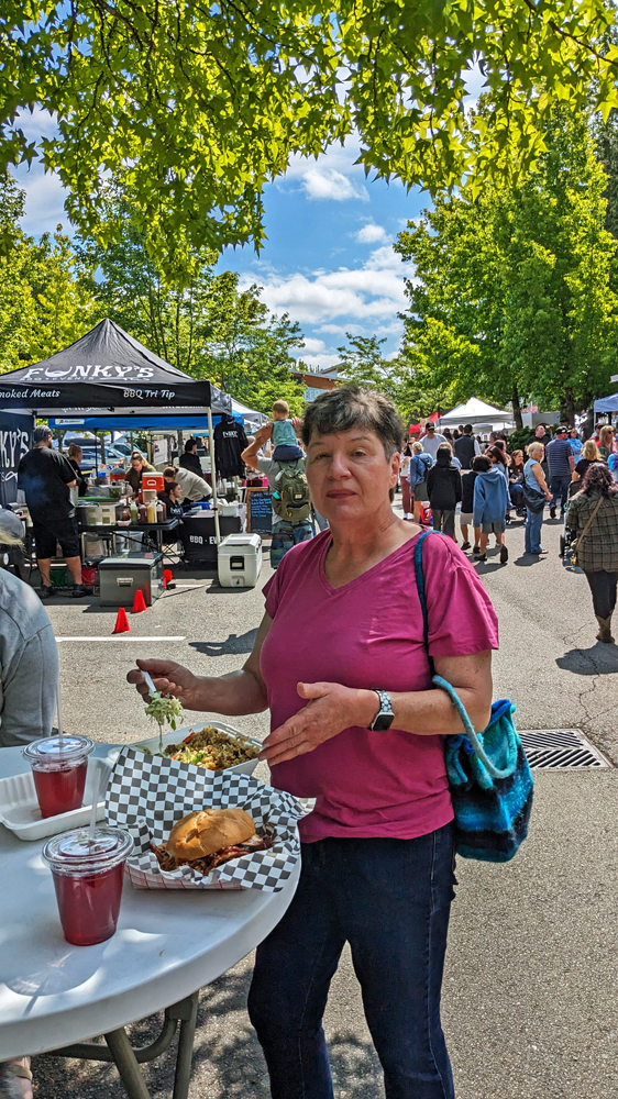 Ich arbeite derweil am Blog, koche (unter anderem ein 4th of July-Menu zum Nationalfeiertag) und liefere mir mit Don am Abend jeweils ein hartes Flipper-Gefecht. Wir besuchen auch seinen Freund Rod, der ebenfalls zwei Flipperkästen hat. Sie sind rund 20 Jahre neuer und spielen sich ganz anders als Dons klassischer, mechanischer Pinball-Wizard aus den 70er-Jahren. Am Vatertag sind wir bei Dons Tochter Erica und ihrem Mann Matt mit-eingeladen und geniessen von feine Burger und ein sehr leckeres Dessert von Matts Mutter. Zwei Mal kommt uns Dons Bruder Jim zum Abendessen besuchen, was auch wieder Gelegenheit bietet, etwas Spezielles zu kochen. Auch Don verwöhnt uns immer wieder mit feinen Steaks vom Grill und ab und zu gehen wir auch auswärts essen, unter anderem natürlich zu unserem Lieblings Seafood-Restaurant Anthony’s at Point Defiance. Ich lerne im Safeway Dagmar kennen, die vor rund 40 Jahren mit ihrem amerikanischen Mann aus Deutschland gekommen ist, und aktuell für die Ladenkette Safeway arbeitet. Sie lädt mich ein, mit ihr am Samstag den Farmers Market in Puyallup zu besuchen und wir verbringen dort einige nette Stunden zusammen. Leider muss sie viel arbeiten, so dass es dieses Mal bei diesem einen Treffen bleibt, aber wir bleiben mit WhatsApp in Kontakt und treffen uns ja vielleicht nächstes Mal wieder.