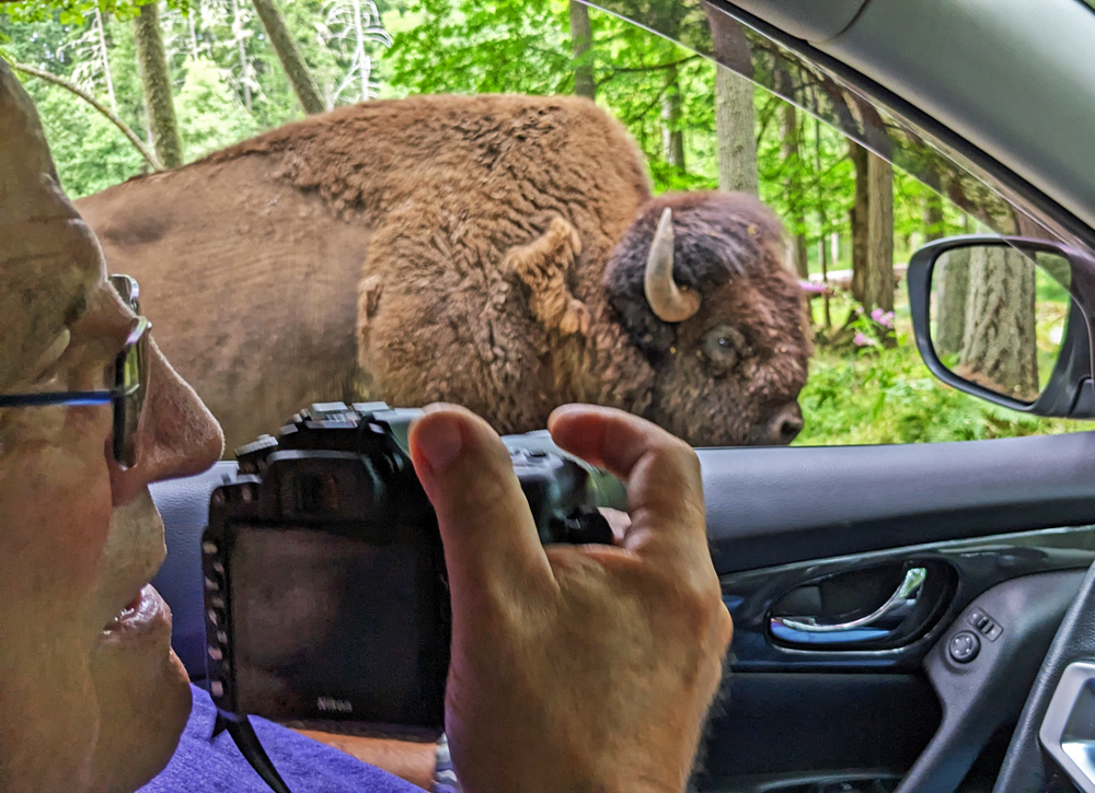 An unserem letzten Tag nimmt uns Rod mit in den Northwest Trek Wildlife Park, ein Wildtierpark, wo wir uns nicht nur diverse einheimische Tiere in ihren Gehegen ansehen, sondern auch mit dem Auto eine geführte «Safari» im grossen Freilaufgehege mit verschiedenen Hirschen, Bisons und Bergziegen machen können (die sich allerdings alle mehr oder weniger gut verstecken…).