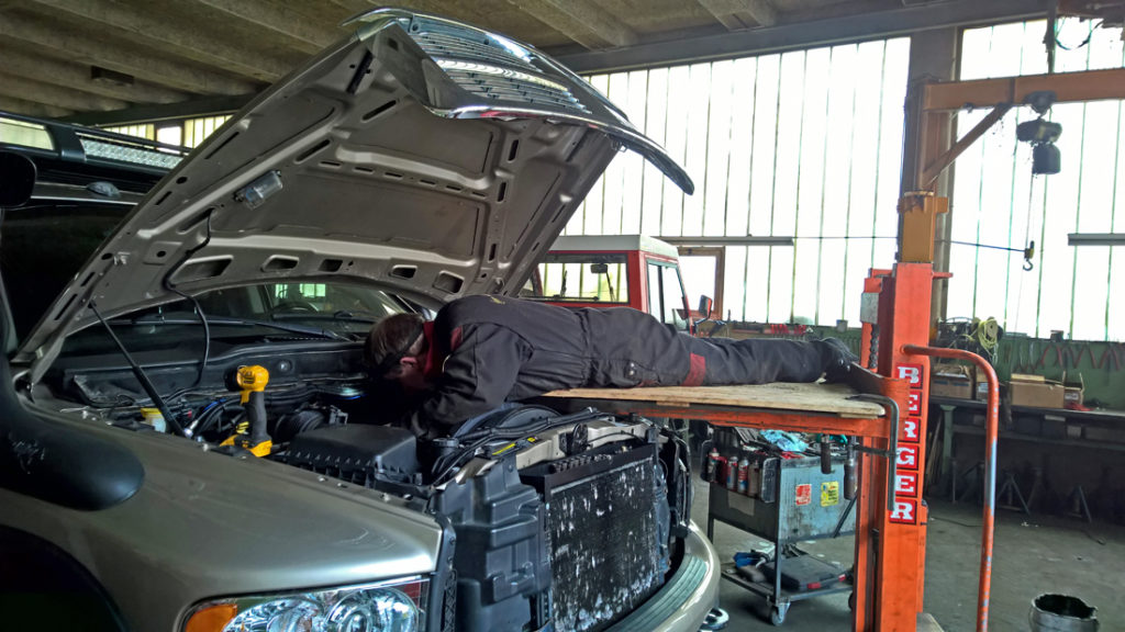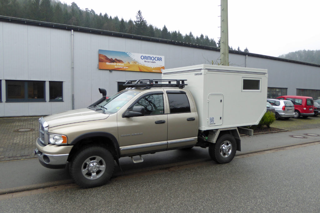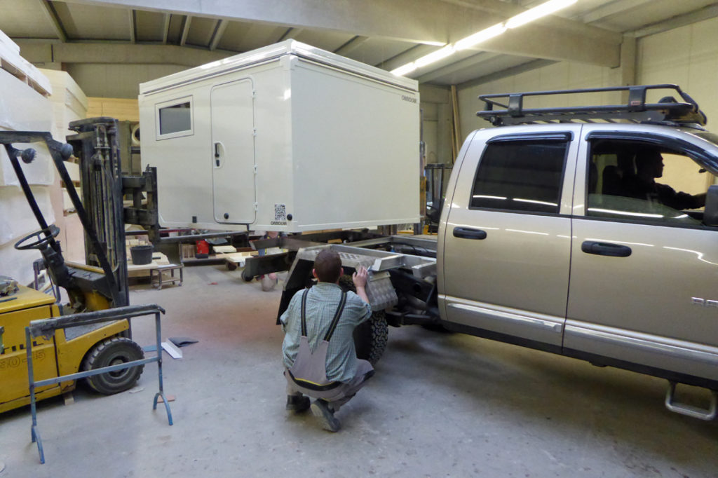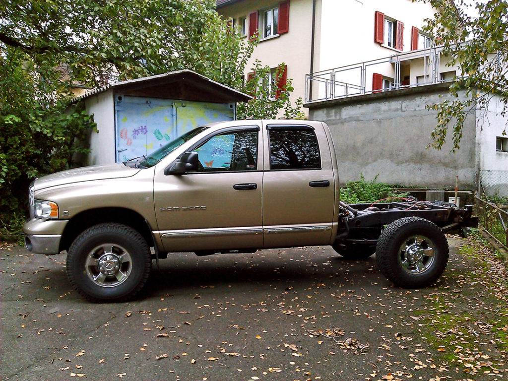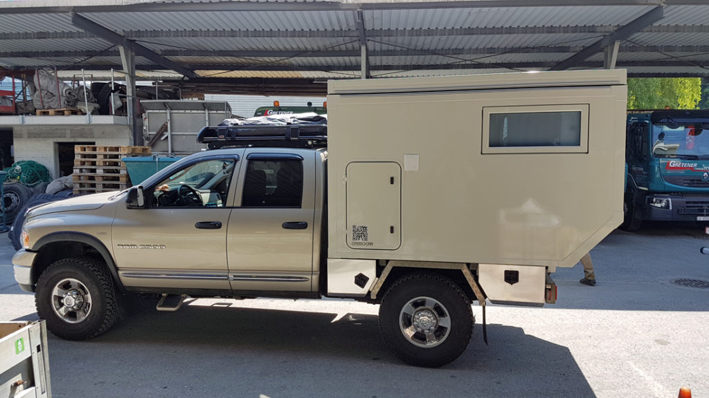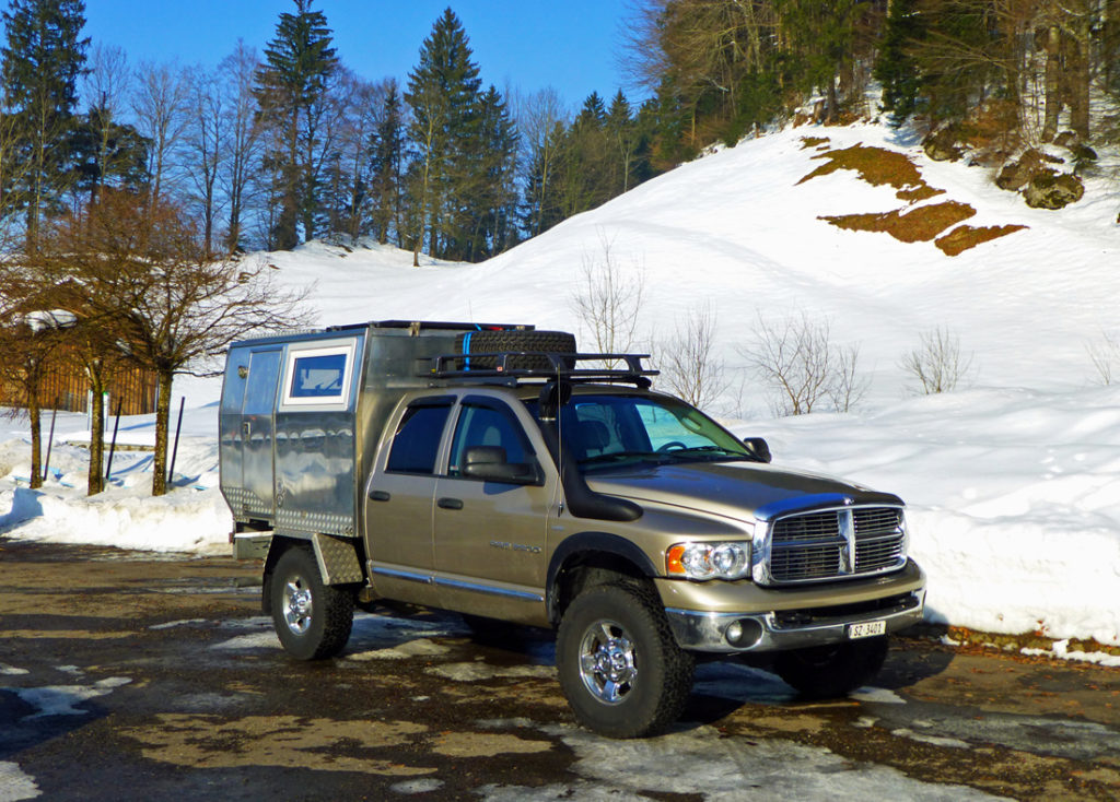 Liebe auf den ersten Blick: Der Dodge RAM 2500 Cummins-Pickup beim Händler Zunnächst wird die Ladebrücke entfernt. Bevor der Aufbau draufkommt, wird der Unterbau geputzt und gegen Rost behandelt. Revision des Verteilergetriebes. Dabei fällt ein ordentlicher Sandhaufen an… Innereien des Automatikgetriebes. Und auch die Schaltung des Automatikgetriebes lässt sich noch optimieren… Der Motor bekommt eine Standheizung. Einbau eines Kompressorss. Freilaufnaben-Installierkit Die montierten Freilaufnaben Auch im „Cockpit“ tut sich einiges Es ist schon gross, das Auto 😉 So arbeitet es sich viel bequemer 😉 Einspritzdüsen-Revision. Auch ein 260 l-Zusatztank wird gebaut. – Zum Glück gibt’s Franz von Schuler Landtechnik in Steinen! Statt der Rückbank nun der Zusatztank, der zugleich als Ladefläche dient. Über dem Zusatztank Rako-Boxen mit den Werkzeugen, darüber auf einem Gestell die Campingausrüstung Dieselfiltersystem Hilfsrahmen für die Kabine. Die von ormocar in Haunstein D gebaute Kabine wird mit dem Fahrzeug vereint. Die Kabine hat auf unseren Wunsch ein Klappdach mit festen Seitenwänden Das „fertige“ Fahrzeug! …nun fehlt nur noch der ganze Innenausbau… Reto Kaufmann von Kaufmann Wohnbedarf GmbH Goldau verlegt den Boden Ozy beginnt derweil mit dem Innenausbau Die Küchenzeile und ein Schrank aus Casemaker Die Sitzbänke im hinteren Teil Manchmal ist es ein bisschen eng zum Arbeiten… 2 Wassertanks à 40 l Seagull-Wasserfilter Einbau des Dieseltanks (mit Gucklöchern) für den Kochherd Unser bestes Stück: der Kühlschrank (inkl. Gefrierfach) Die fertige Küchenzeile Die Küche mit Abwaschbecken und zweiflammigem Webasto-Dieselkocher Ozys geniale Küchenschrank-Erfindung: Rako-Boxen mit Möbelverschlüssen gegen das Herausfallen Ozy klebt die Solarzellen aufs Dach 5 x 100 W Solarstrom Die LiFePo-Batterien für den Camper Auch ein Spannungswandler wird eingebaut. Der „Elektroschrank“ Webasto-Dieselheizung Truma-Saphire Klimaanlage Der Tisch wurde von Steiner&Camenzind in Steinen geschreinert Sitzecke… …gleichzeitig das Bett Die Blattfedern (und Stossdämpfer) werden ans neue Gewicht ngepasst. Einweihungsfeier im November 2016 …es passen sogar 6 rein 😉 Staubsichere Alu-Aussenboxen von Weiss Fahrzeugtechnik in Root Die montierten Aussen-Stauboxen Aussenbeleuchtung „Zombielights“ an allen Ecken Man kann nie genug Licht haben… Unsere Einstiegsleiter Da die Einstigsleiter unter dem Chassis keinen Platz hat, wird sie an der Tür verstaut. Putzkästli Praktische Kiiper-Netze Alles für den Notfall: Feuerlöscher und 1. Hilfe-Box