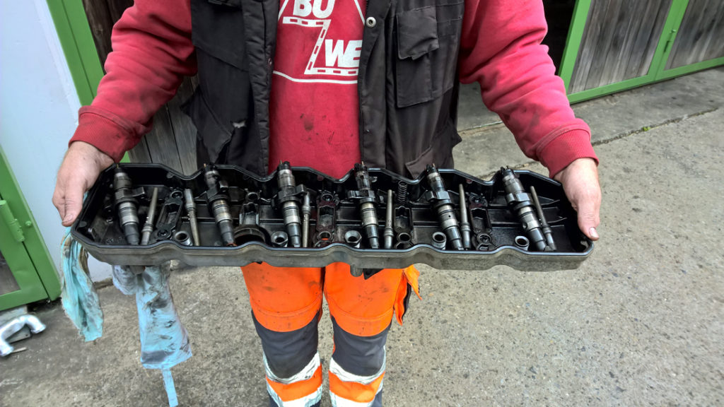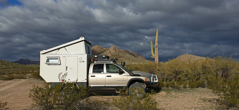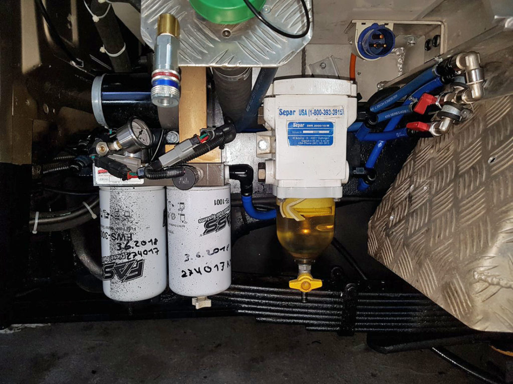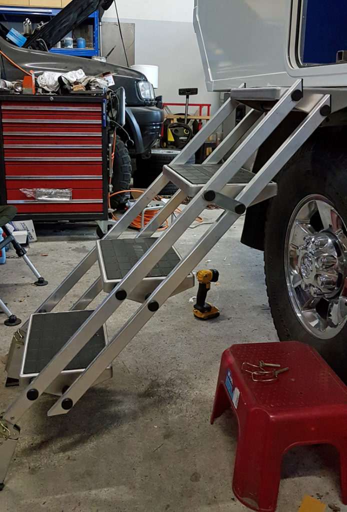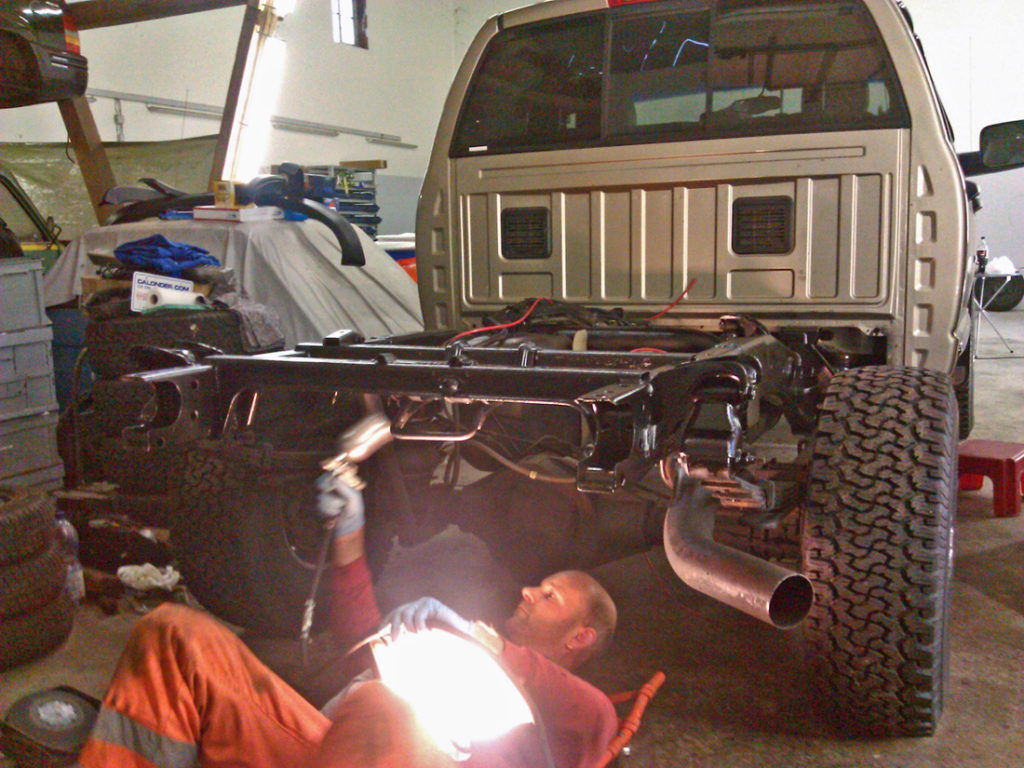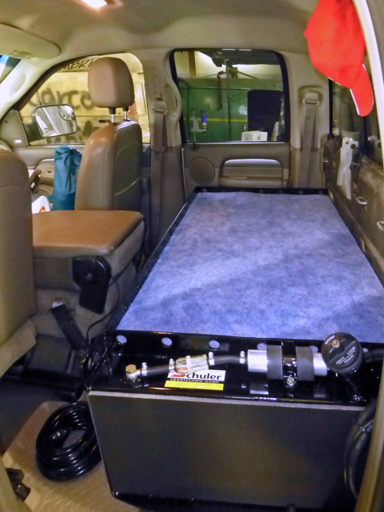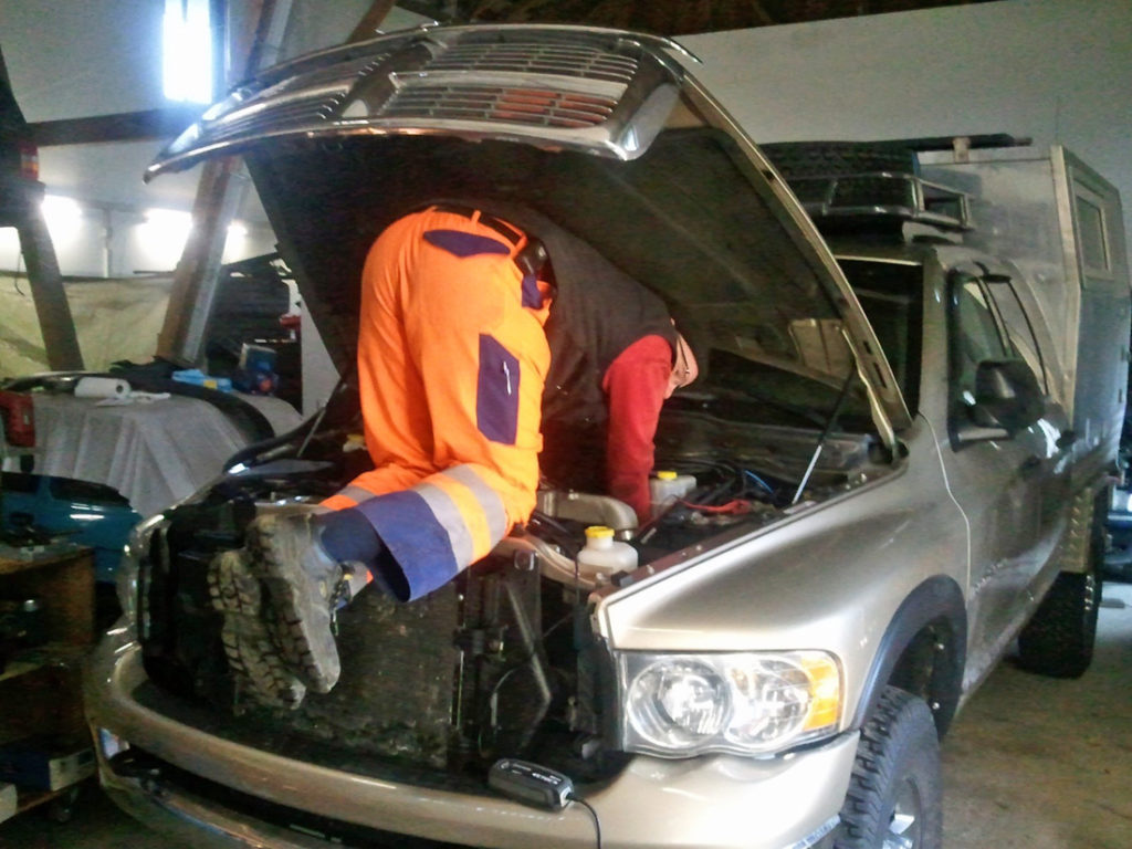 Liebe auf den ersten Blick: Der Dodge RAM 2500 Cummins-Pickup beim Händler Zunnächst wird die Ladebrücke entfernt. Bevor der Aufbau draufkommt, wird der Unterbau geputzt und gegen Rost behandelt. Revision des Verteilergetriebes. Dabei fällt ein ordentlicher Sandhaufen an… Innereien des Automatikgetriebes. Und auch die Schaltung des Automatikgetriebes lässt sich noch optimieren… Der Motor bekommt eine Standheizung. Einbau eines Kompressorss. Freilaufnaben-Installierkit Die montierten Freilaufnaben Auch im „Cockpit“ tut sich einiges Es ist schon gross, das Auto 😉 So arbeitet es sich viel bequemer 😉 Einspritzdüsen-Revision. Auch ein 260 l-Zusatztank wird gebaut. – Zum Glück gibt’s Franz von Schuler Landtechnik in Steinen! Statt der Rückbank nun der Zusatztank, der zugleich als Ladefläche dient. Über dem Zusatztank Rako-Boxen mit den Werkzeugen, darüber auf einem Gestell die Campingausrüstung Dieselfiltersystem Hilfsrahmen für die Kabine. Die von ormocar in Haunstein D gebaute Kabine wird mit dem Fahrzeug vereint. Die Kabine hat auf unseren Wunsch ein Klappdach mit festen Seitenwänden Das „fertige“ Fahrzeug! …nun fehlt nur noch der ganze Innenausbau… Reto Kaufmann von Kaufmann Wohnbedarf GmbH Goldau verlegt den Boden Ozy beginnt derweil mit dem Innenausbau Die Küchenzeile und ein Schrank aus Casemaker Die Sitzbänke im hinteren Teil Manchmal ist es ein bisschen eng zum Arbeiten… 2 Wassertanks à 40 l Seagull-Wasserfilter Einbau des Dieseltanks (mit Gucklöchern) für den Kochherd Unser bestes Stück: der Kühlschrank (inkl. Gefrierfach) Die fertige Küchenzeile Die Küche mit Abwaschbecken und zweiflammigem Webasto-Dieselkocher Ozys geniale Küchenschrank-Erfindung: Rako-Boxen mit Möbelverschlüssen gegen das Herausfallen Ozy klebt die Solarzellen aufs Dach 5 x 100 W Solarstrom Die LiFePo-Batterien für den Camper Auch ein Spannungswandler wird eingebaut. Der „Elektroschrank“ Webasto-Dieselheizung Truma-Saphire Klimaanlage Der Tisch wurde von Steiner&Camenzind in Steinen geschreinert Sitzecke… …gleichzeitig das Bett Die Blattfedern (und Stossdämpfer) werden ans neue Gewicht ngepasst. Einweihungsfeier im November 2016 …es passen sogar 6 rein 😉 Staubsichere Alu-Aussenboxen von Weiss Fahrzeugtechnik in Root Die montierten Aussen-Stauboxen Aussenbeleuchtung „Zombielights“ an allen Ecken Man kann nie genug Licht haben… Unsere Einstiegsleiter Da die Einstigsleiter unter dem Chassis keinen Platz hat, wird sie an der Tür verstaut. Putzkästli Praktische Kiiper-Netze Alles für den Notfall: Feuerlöscher und 1. Hilfe-Box