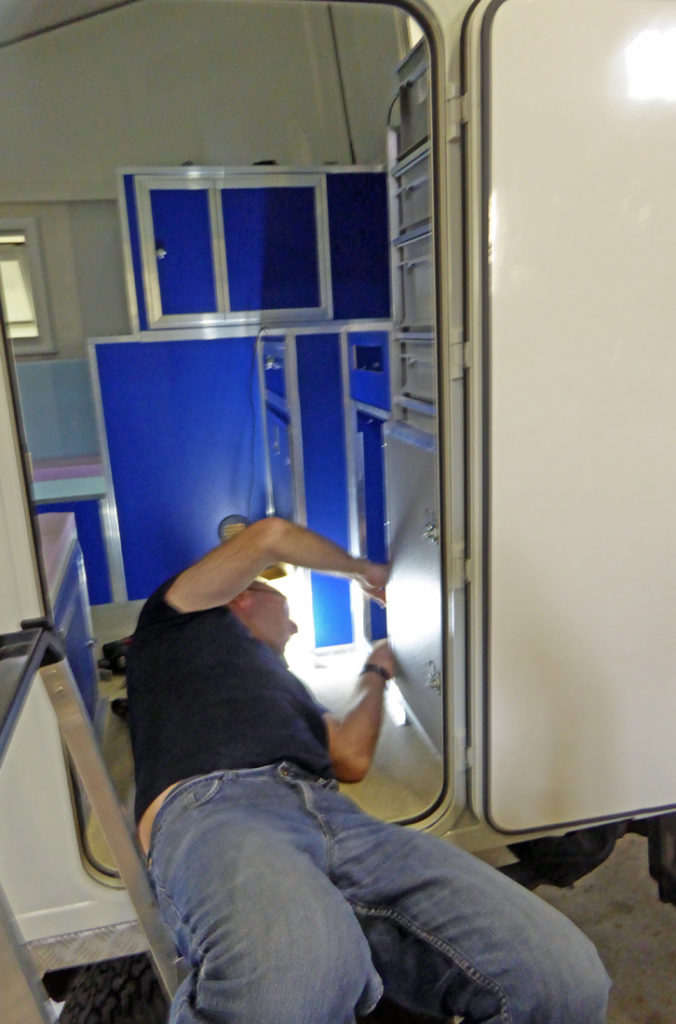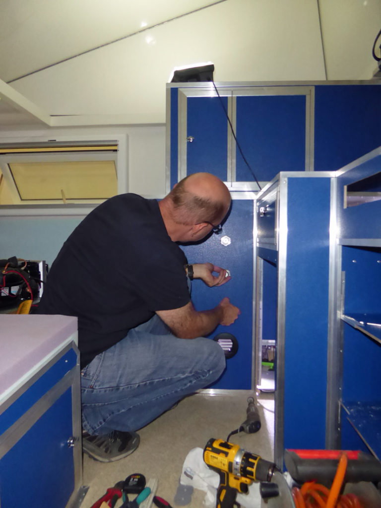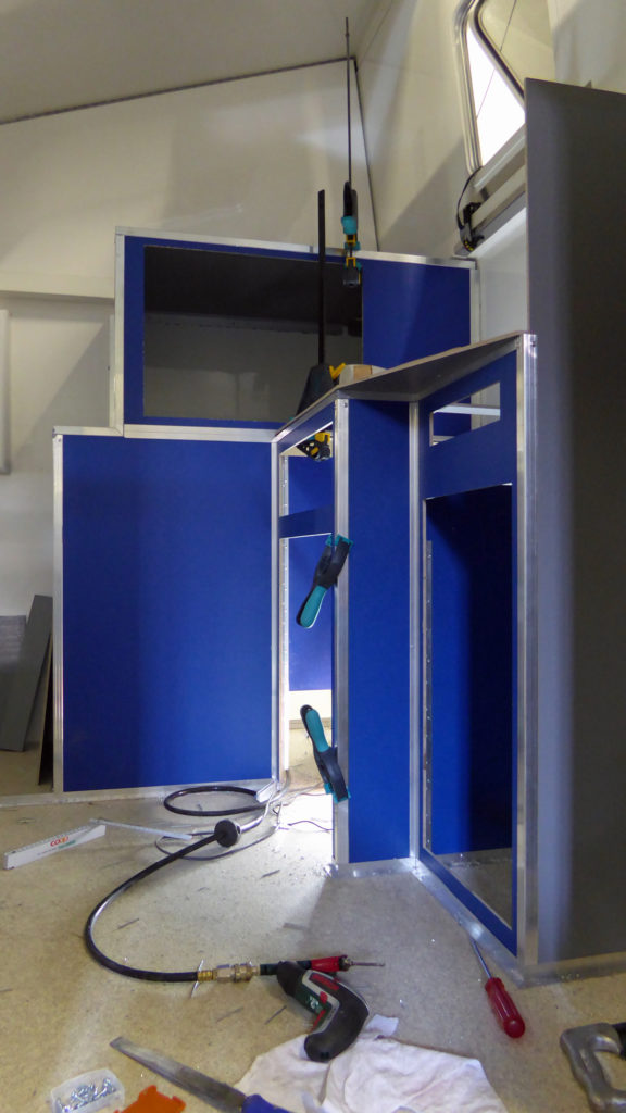 Ganz allein waren wir zum Glück aber nicht. Im Gegenteil. Wir durften immer auf Hilfe und Unterstützung von lieben Freunden zählen. Wie zum Beispiel Gino, der immer zur Stelle ist, wenn eine zusätzliche Hand, Werkzeug oder eine gute Idee gefragt sind, Jürgen, der uns überhaupt auf den Casemaker-Innenausbau gebracht hat und sogar extra von Deutschland aus angereist ist, um uns ein Wochenende lang tatkräftig die entscheidende Starthilfe zu geben, Franz von Schuler Landtechnik GmbH in Steinen, der uns immer wieder mit Rat, Tat und auch mal einem Gabelstapler zur Seite steht und viele mehr.