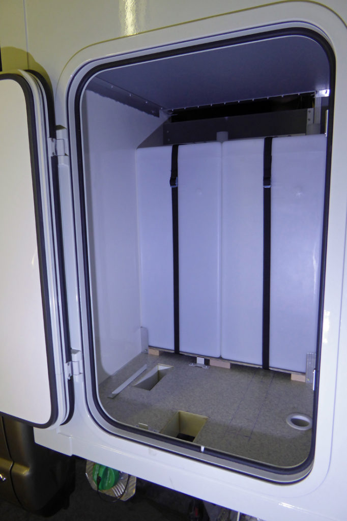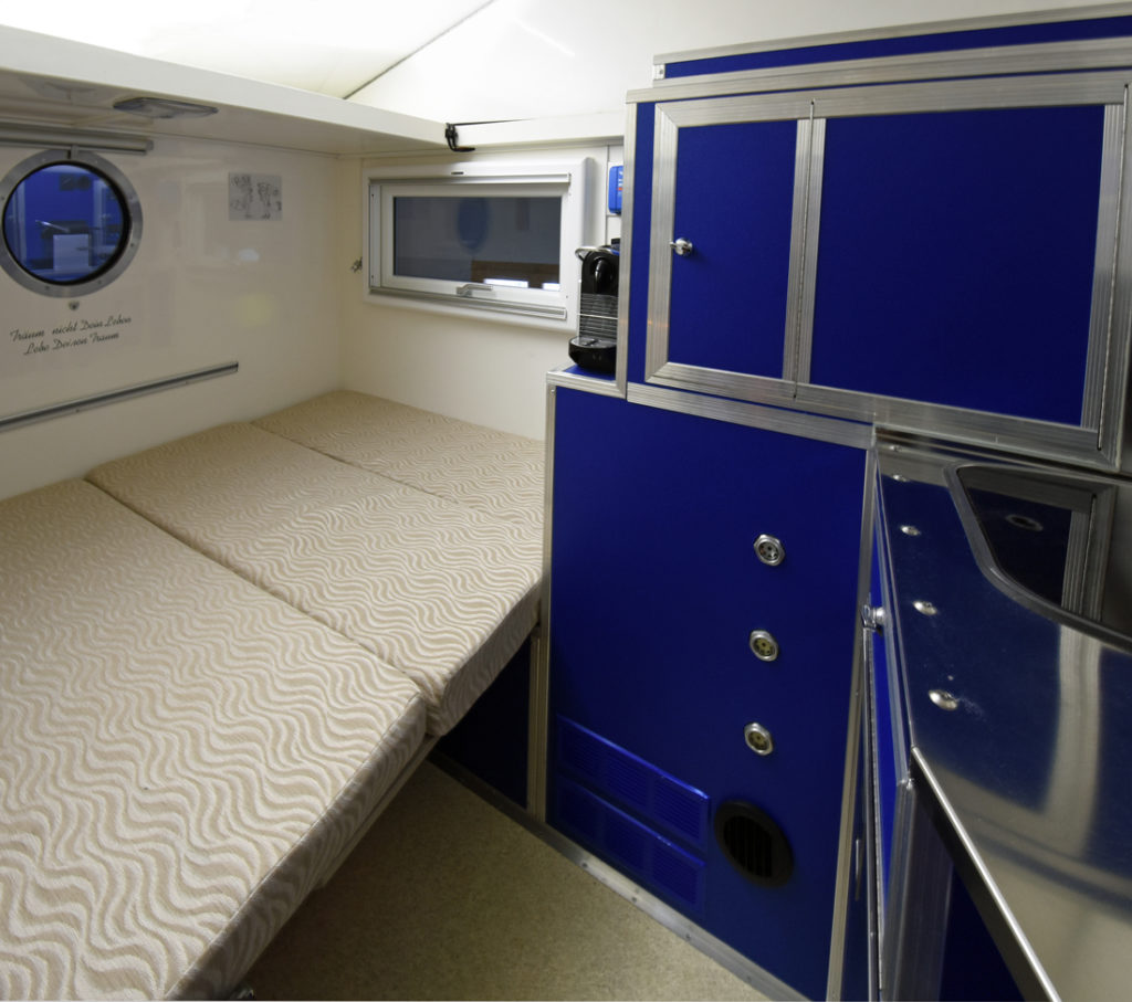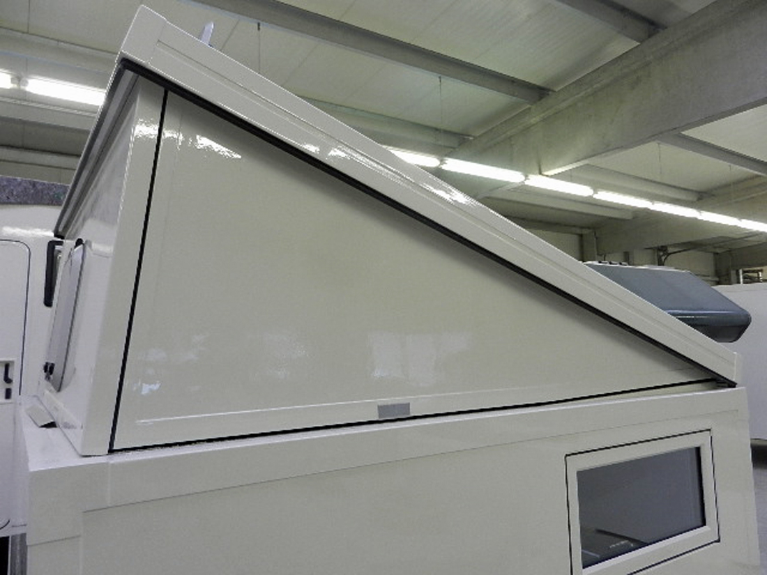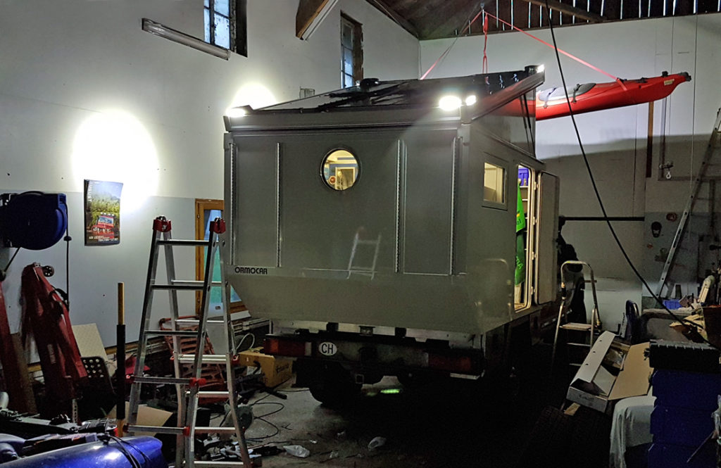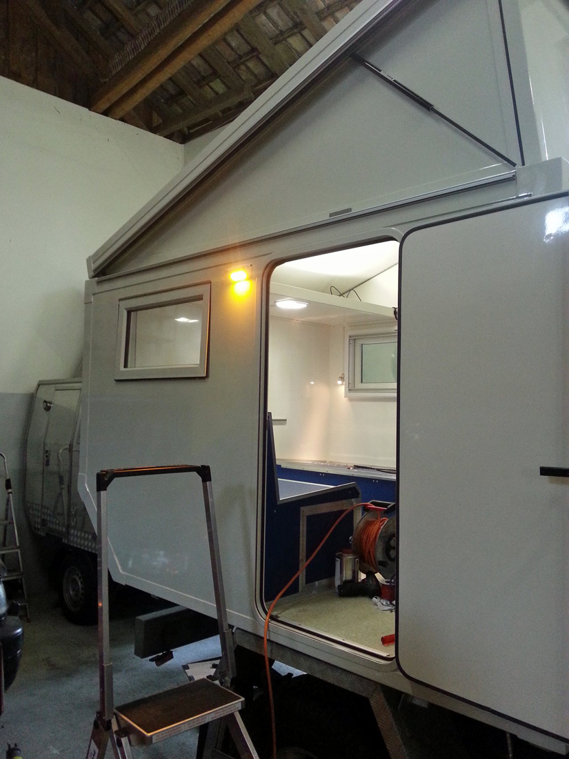 2015 liessen wir deshalb von Ormocar in Haunstein D eine wintertaugliche GFK-Box bauen, die ein Klappdach mit festen Wänden hat.